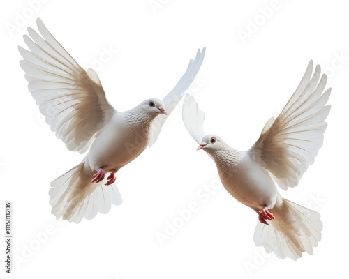 © Mr. Stocker, Fototapeta premium Two white doves soaring gracefully in flight, cut out - stock png.