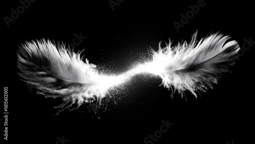 © boy, Obraz premium Two white feathers intertwined, radiating light
