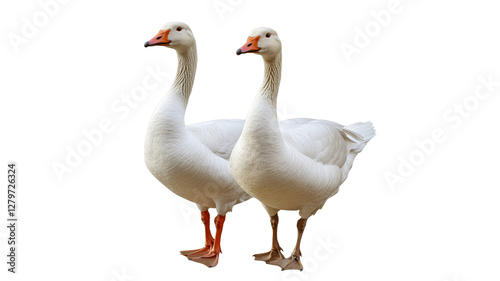 © Maestro, Obraz premium Two white geese standing together outdoors