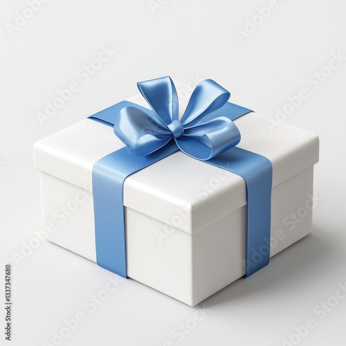 © BD ISLAM, Obraz premium two white gift box with blue ribbon 3d render icon isolated on white background