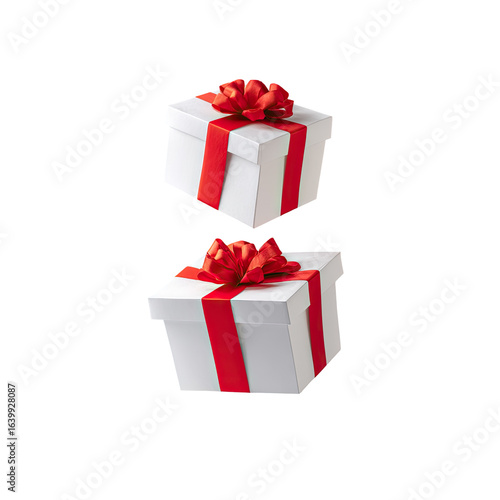 © Iwan, Fototapeta premium Two white gift boxes stacked, adorned with red ribbons