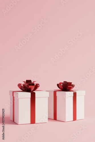 Obraz premium Two White Gift Boxes with Red Ribbon on Isolated Background