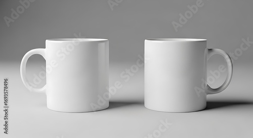 © ragil, Fototapeta premium Two White Mugs on Gray Background.