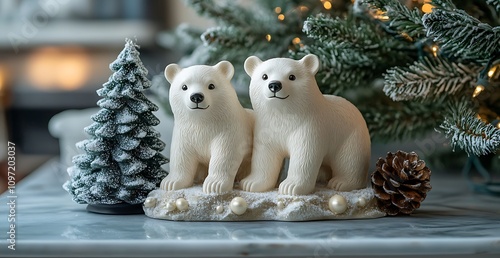 © Micro, Fototapeta premium Two White Polar Bears on a Shelf