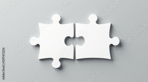 Obraz premium Two White Puzzle Pieces Interlocking, Symbolizing Unity and Collaboration in a Strategic Partnership