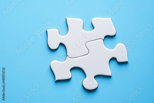 © X, Obraz premium Two white puzzle pieces joined (1)