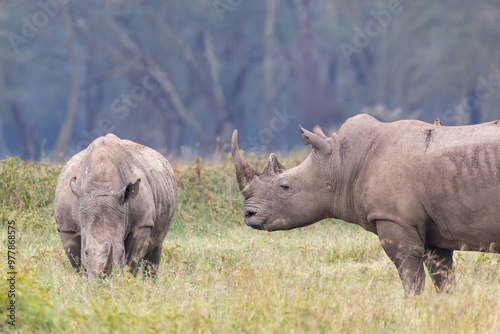Obraz premium Two white rhino (Ceratotherium simum) in the wild