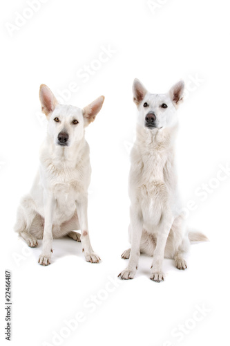 Obraz premium two white shepherds isolated on a white background