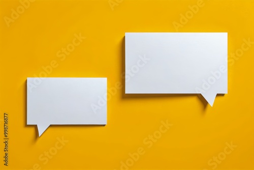 Fototapeta premium two white speech bubbles on a yellow background with shadow