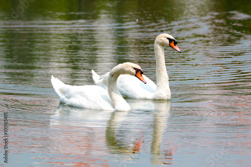 Naklejka premium Two white swans on a lake