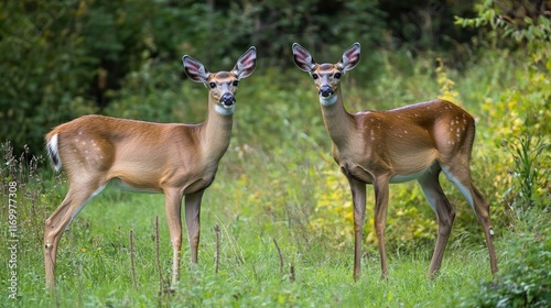© Infinity, Fototapeta premium Two White-Tailed Deer in a Lush Forest