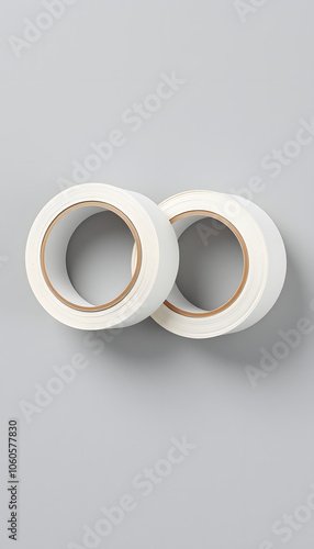 © Sergey, Fototapeta premium Two white unrolled duct tapes mockup on a grey background isolated with white highlights, png