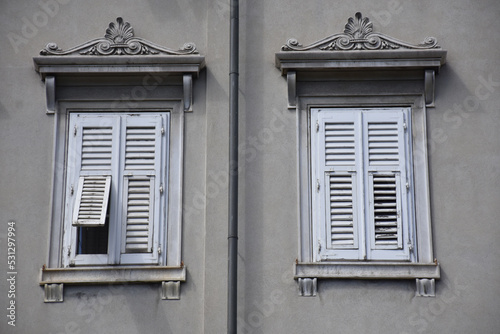 © Ilija, Fototapeta premium Two white windows on a gray building