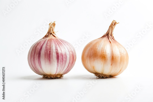 Fototapeta premium Two Whole Garlic Bulbs on White Background