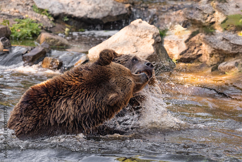 © Elena, Obraz premium two Wild brown bear ,ursus arctos playing