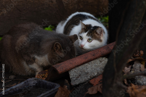 © Donalda La Fey, Fototapeta premium Two wild cats are eating