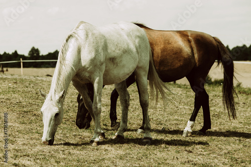 Obraz premium Two wild horses on meadow field