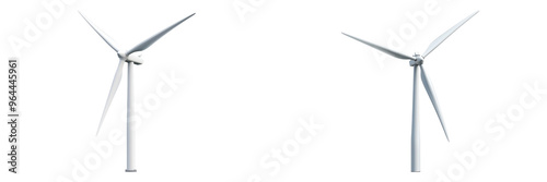 © Sariyono, Fototapeta premium Two wind turbines generating renewable energy on a clear day