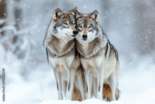 © Snowstudio, Fototapeta premium Two wolves in the snow forest