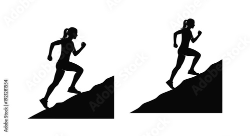 Obraz premium Two women running uphill depicted as a stark black silhouette
