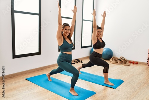 © Krakenimages.com, Naklejka premium Two women smiling confident training yoga at sport center