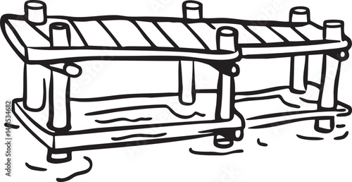 © Rysak, Obraz premium Two wooden docks extend into a calm body of water.