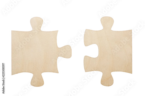 © Kseniia, Fototapeta premium two wooden puzzles isolated on white background