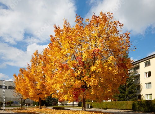 © Vista Photo, Naklejka premium Two yellow acer trees in the street