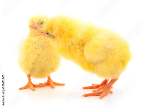 Fototapeta premium Two yellow chicks.