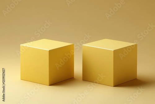 © muhrohan, Fototapeta premium Two yellow cubes on a yellow background.