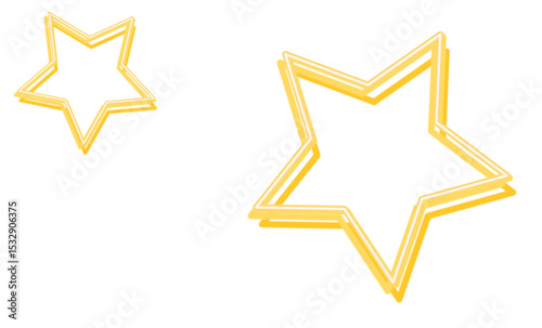 © vectorfusionart, Naklejka premium Two yellow 3D wireframe stars, one larger and one smaller, are floating on transparent background