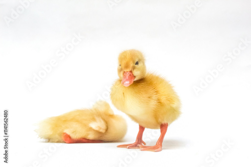 Fototapeta premium two yellow ducklings on white