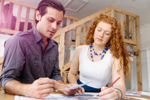© Sergey Nivens, Obraz premium Two young architects in office