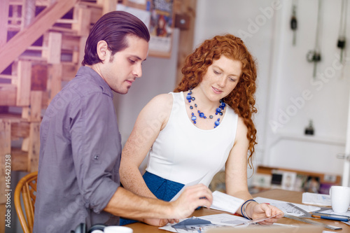 © Sergey Nivens, Obraz premium Two young architects in office