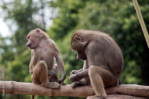 Naklejka premium two young baboon on a log