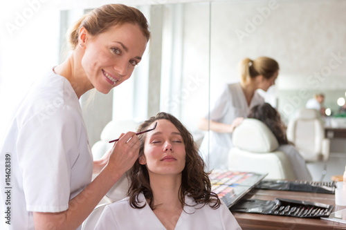 © Production Perig, Fototapeta premium Two young beautician students working during make up classes