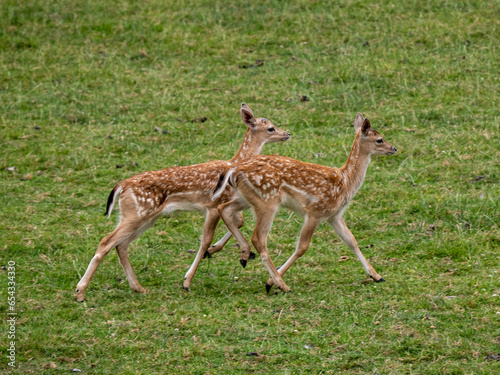 © Stephan Morris , Fototapeta premium Two Young Fallow Deer Running