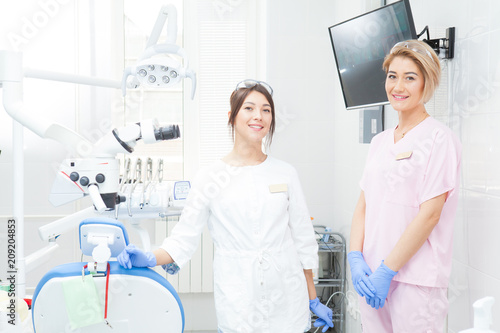 © Dmitry, Fototapeta premium Two young girls-dentists in the treatment room.