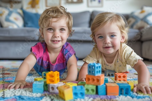 © Sandu, Fototapeta premium Two young girls lying floor play