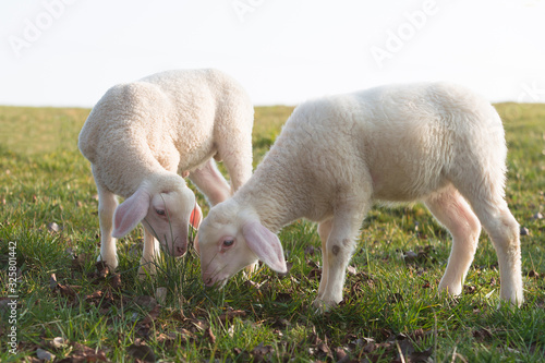 © BirgitKorber, Obraz premium Two young lambs on a meadow