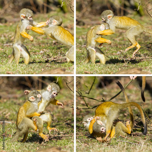 © michaklootwijk, Obraz premium Two young Squirrel Monkeys (Saimiri boliviensis) fighting
