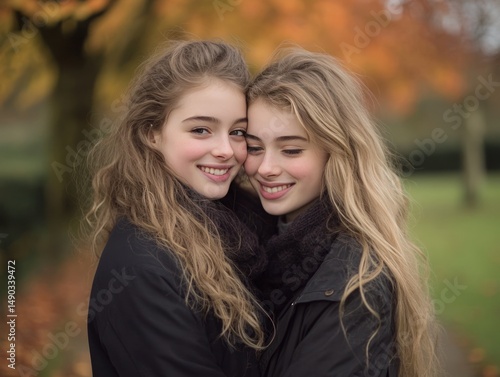 © Ashalina, Obraz premium Two young women embrace in natural light a portrait of friendship and togetherness