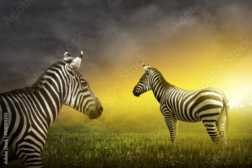 © Leo Lintang, Fototapeta premium Two zebra on the grassland