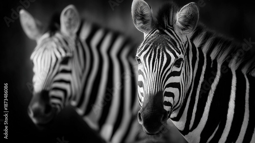 © Olga, Obraz premium Two zebras in black and white contrast