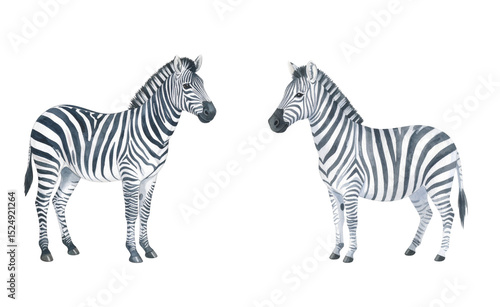 © anocha, Obraz premium Two zebras standing together, showcasing their iconic black and white stripes.