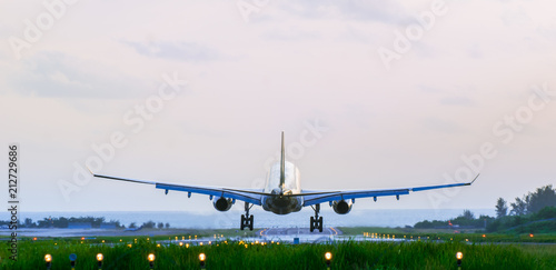 © T i M e L a P s E, Obraz premium Tył przylatującego samolotu
