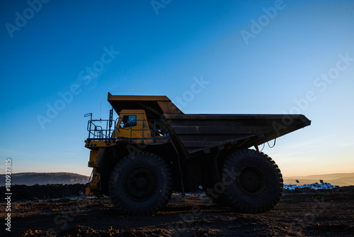 © photollurg, Fototapeta premium type of coal quarry with working machinery