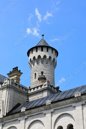 Fototapeta premium Types of the ancient Neuschwanstain Bavarian castle, one of the best-known...