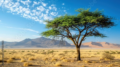 © aishale, Fototapeta premium Typical African Lone Acacia Tree in the Namib Desert – Namibia and South Africa