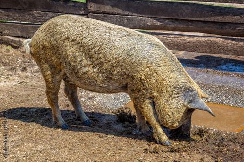© Arpad, Fototapeta premium Typical and special Hungarian pig specie (Mangalica), that means whose meat contains very little cholesterol